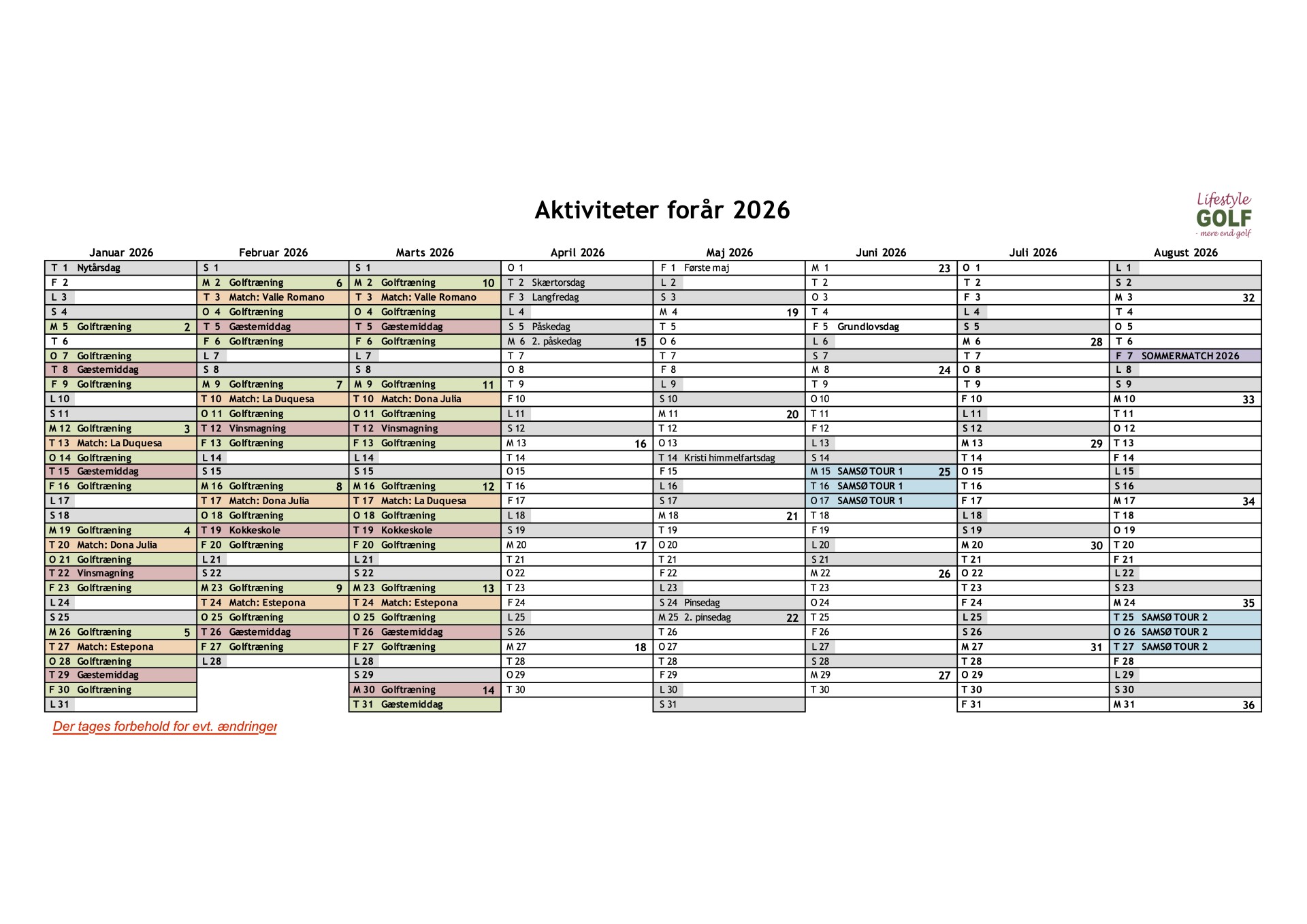 LifestyleGOLF tilbyder masser af aktiviteter under jeres ophold: